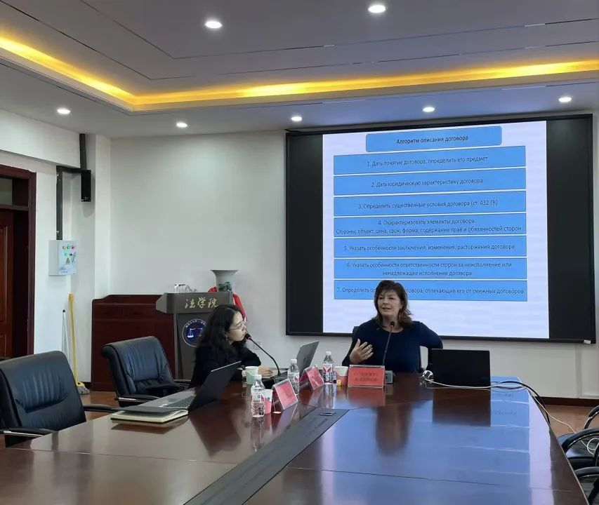 在讲座中,切尔努西老师将俄罗斯民事合同问题分为概念、体系和纠纷解决三个部分进行阐述。首先,以合同的四层含义逐层分析和讲解,并将俄罗斯的法律规定与中国、美国的法律规定进行简要对比,拓宽了学生们法律知识的国际视野。其次,在合同体系部分,对合同的要素进行介绍,并结合前沿理论与案例实务展开讲解。最后,在纠纷解决部分,结合俄罗斯联邦最高法院的司法解释与实务案例,对变更和撤销的情形进行介绍,同时,对于未履行或未适当履行的责任类型及其后果进行阐释。