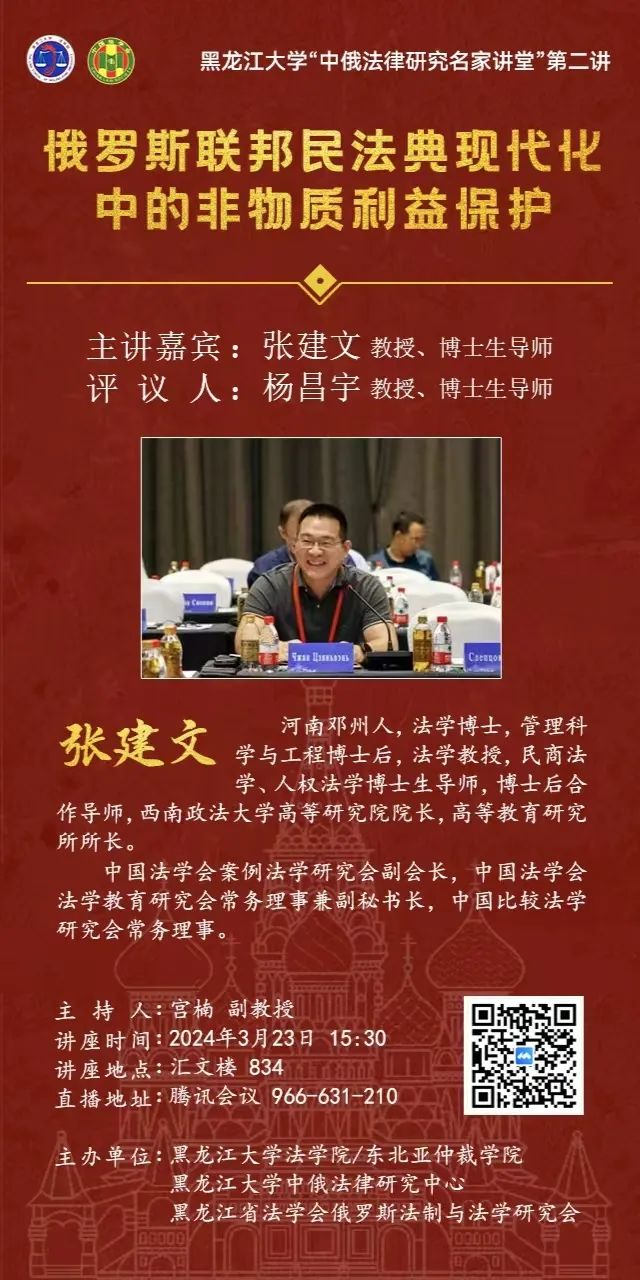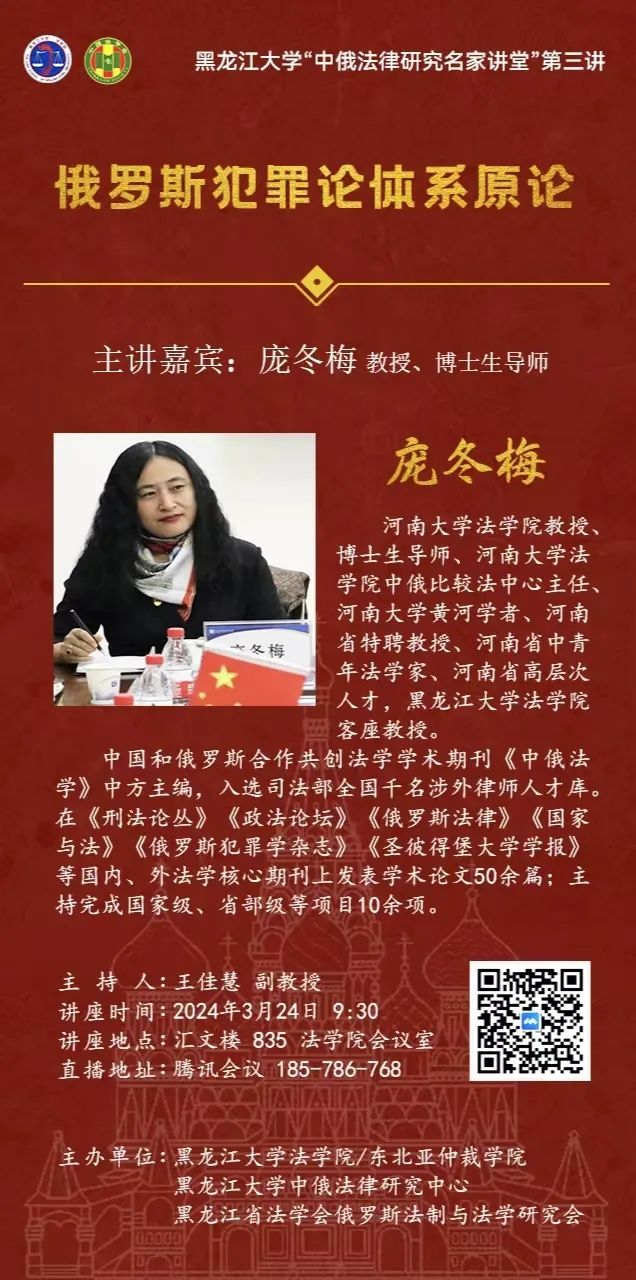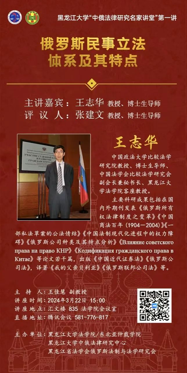 黑龙江大学“中俄法律研究名家讲堂”系列讲座预告