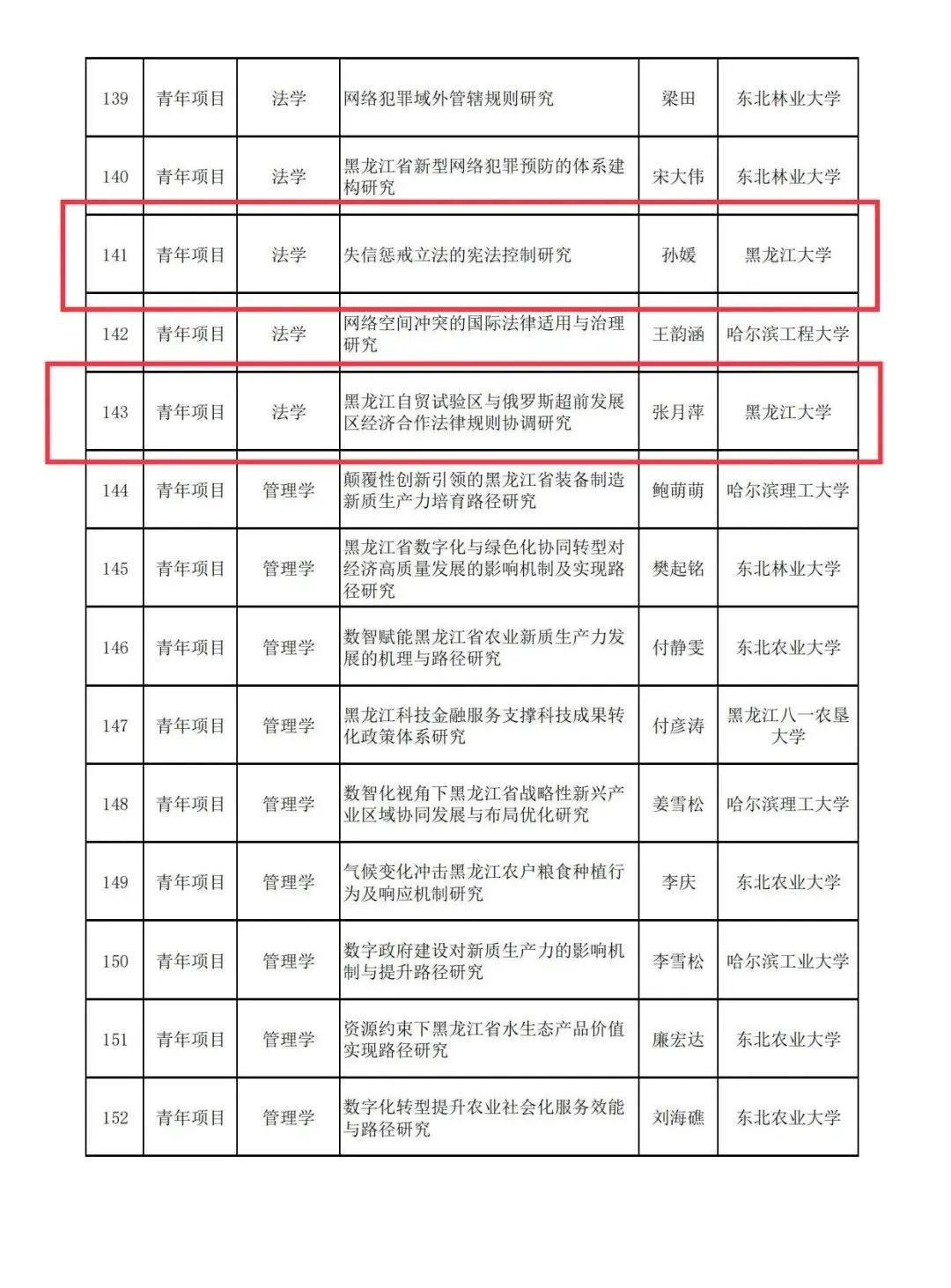 11月23日,黑龙江省哲学社会科学工作办公室将2024年度省社科研究规划项目拟立项名单予以公示。其中,炸金花app下载 获批重点项目1项,一般项目3项,青年项目2项。