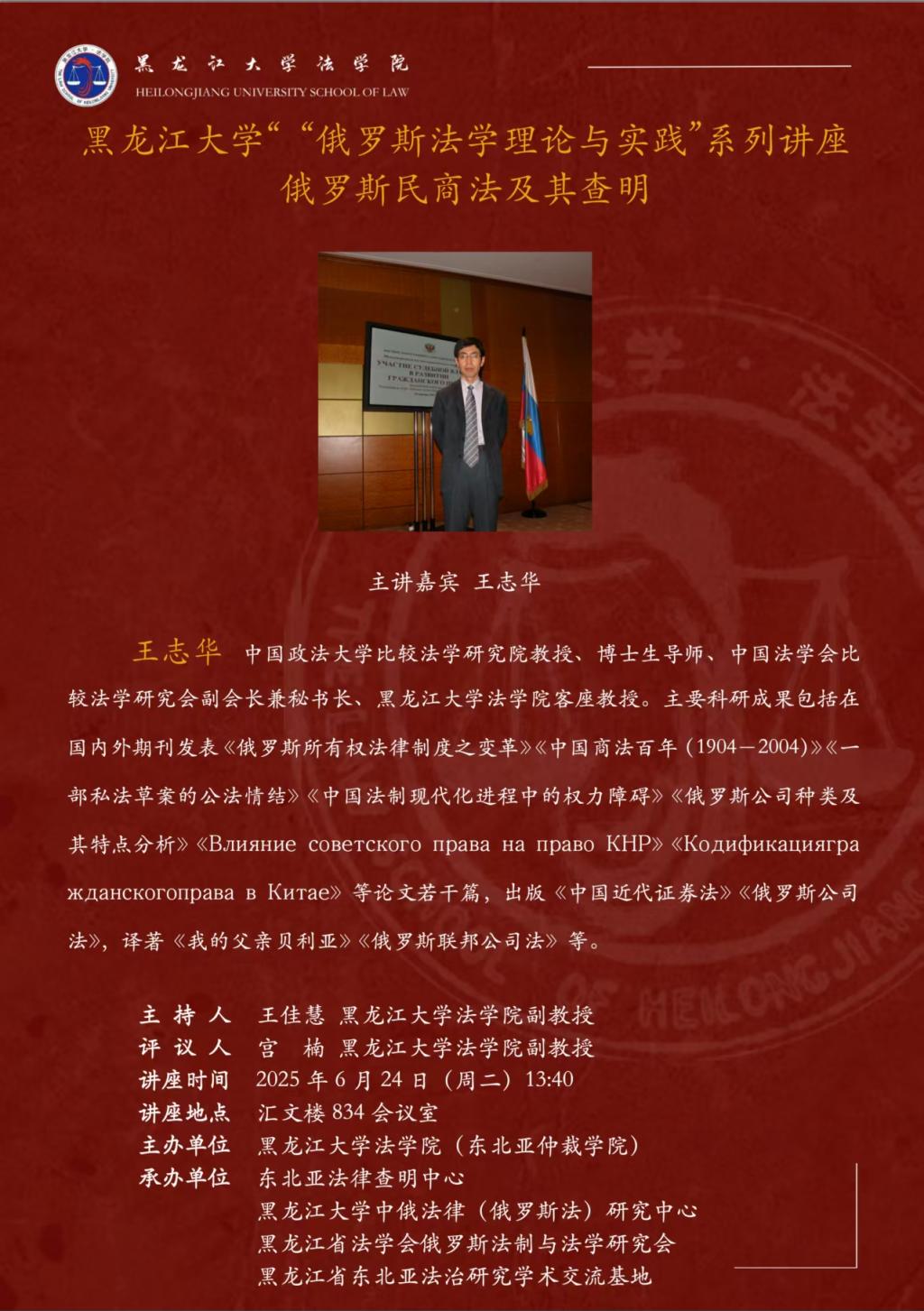 讲座预告 | 黑龙江大学“俄罗斯法学理论与实践”系列讲座:俄罗斯民商法及其查明