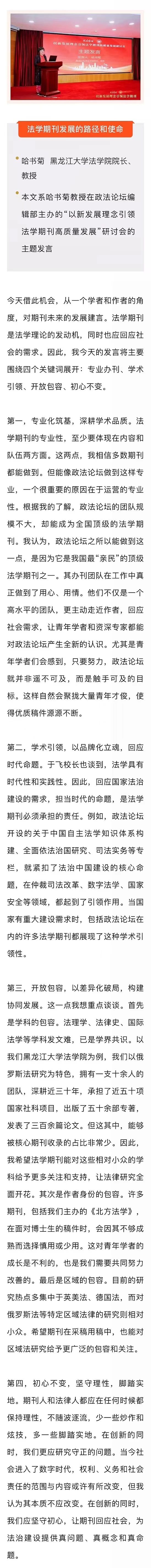 主题发言 | 哈书菊:法学期刊发展的路径和使命