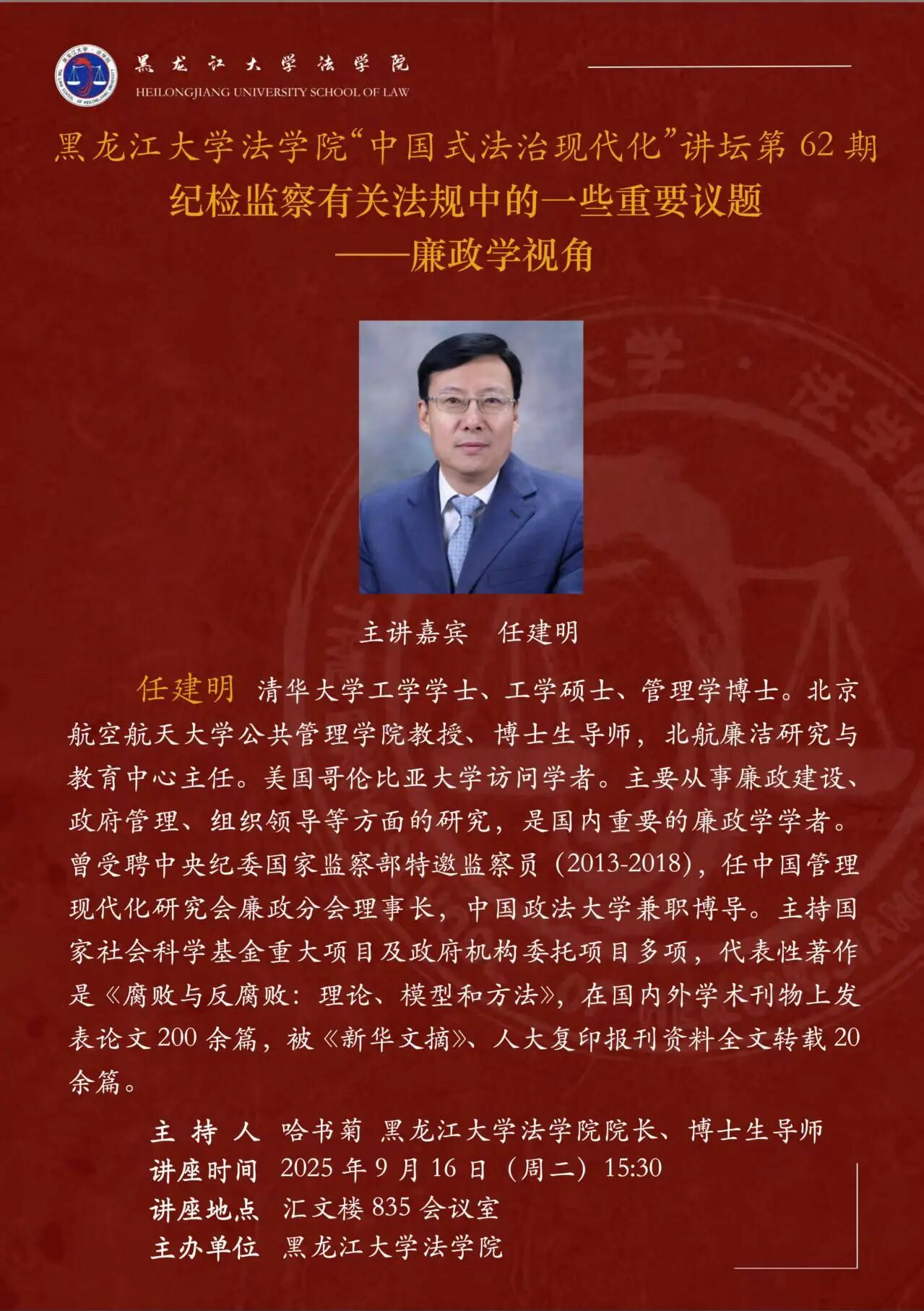 讲座预告 | 炸金花app下载 “中国式法治现代化”讲坛第62期 纪检监察有关法规中的一些重要议题——廉政学视角