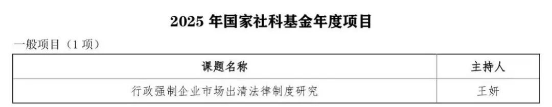 王妍教授主持的《行政强制企业市场出清法律制度研究》成功获批一般项目。