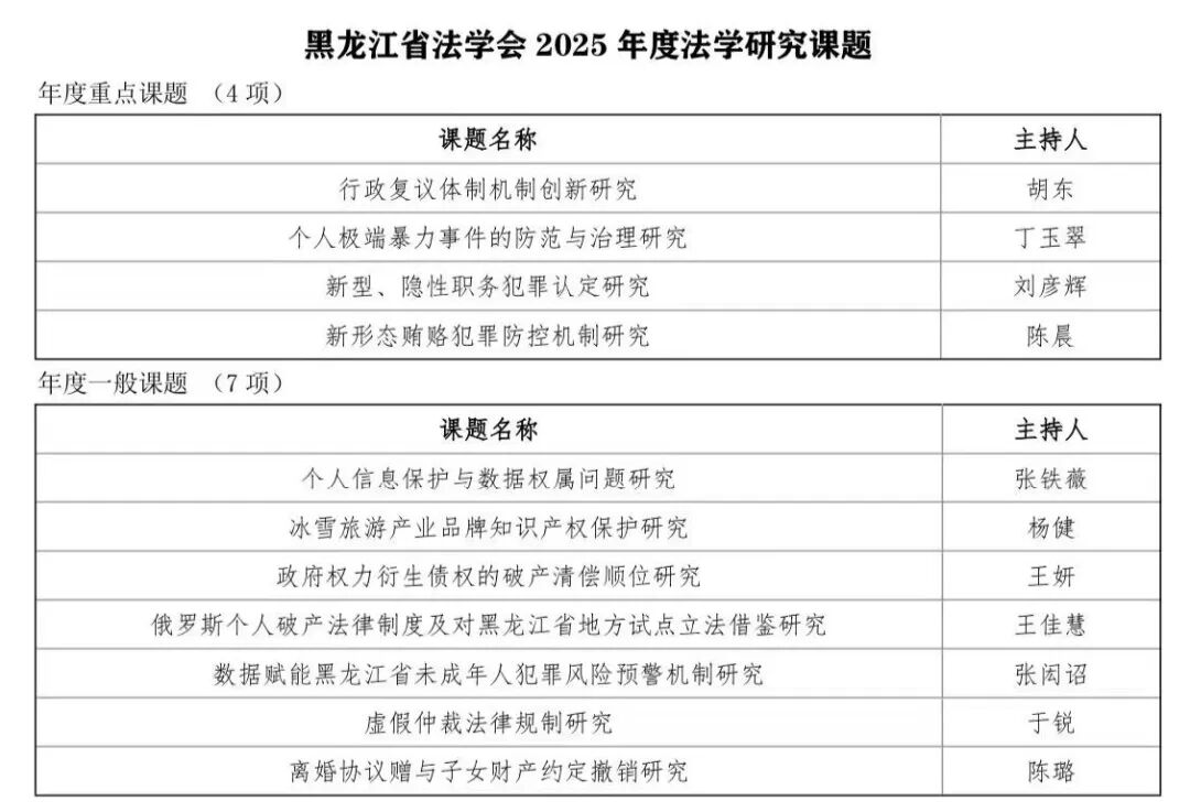 近日,在黑龙江省法学会2025年度课题立项中,炸金花app下载