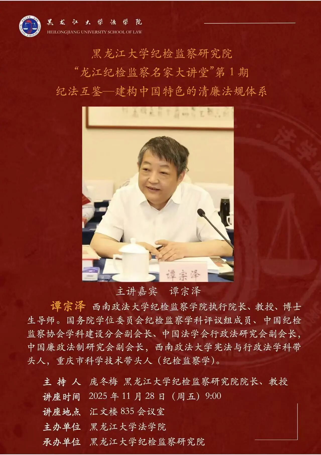 讲座预告 | 黑龙江大学纪检监察研究院“龙江纪检监察名家大讲堂”第1期:纪法互鉴——建构中国特色的清廉法规体系