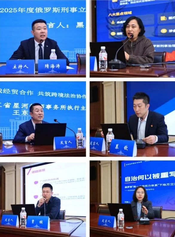教授庞冬梅,黑龙江星河律师事务所执行主任王东伟,哈尔滨仲裁委员会国际部部长慕钦,北京大成(哈尔滨)律师事务所高级合伙人贾缤,黑龙江大学外国语言文学博士后流动站助理研究员张月萍分别作主题发言,从不同维度分享比较法学前沿研究与实践经验。