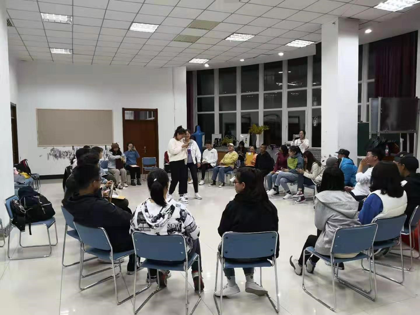 活动伊始,同学们在教练的带领下开始了第一个暖场游戏——大风吹,同学们很快消除了各自的拘束,气氛开始慢慢活跃起来。