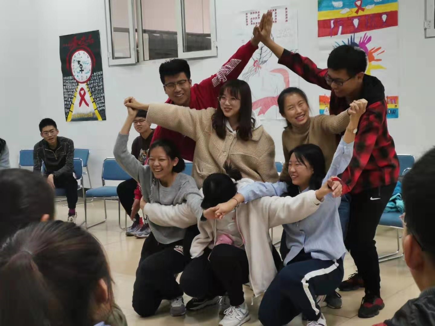 最后,以“心有千千结”作为活动的收尾。通过“心有千千结”,平时不怎么说话的同学之间也在活动中有了更多的交流。同学们纷纷感慨众人拾柴火焰高,团队的力量是巨大的。只有大家团结一致,心往一处用,劲往一处使,才能更好的将问题一一解决。
