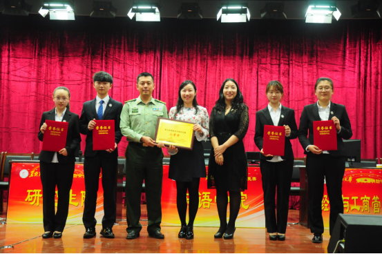 参赛的2017级四位同学及指导教师杨译迪老师表示肯定,并鼓励大家在日后的学习、生活和工作中继续发扬拼搏精神。