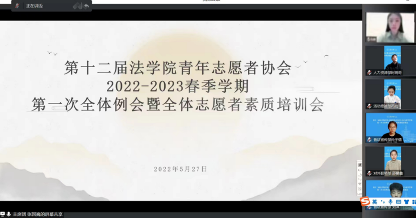 青年志愿者协会于2022年5月27日召开第一次全体例会暨全体志愿者素质培训会,本次会议由炸金花下载
