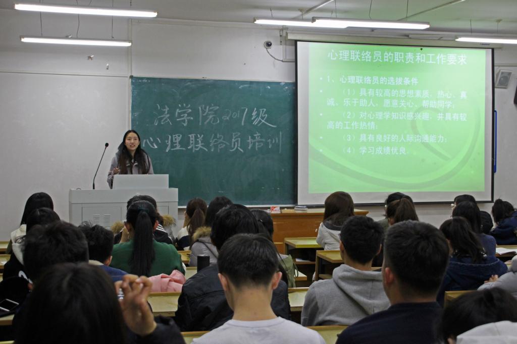 2017级全体班级心理辅导员和寝室心理联络员参加本次培训大会。