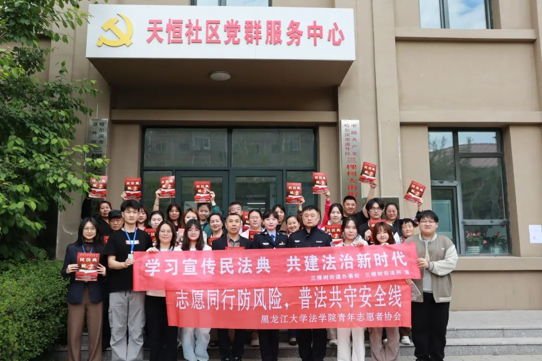 组织青年志愿者们走进天恒社区,开展“普法五进”主题活动。通过案例讲解、发放传单、法律咨询等方式,将“民法典”知识送到家门口,让法治精神融入社区生活。