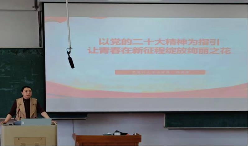 在课堂上,孙世萍以党的二十大报告中关于青年工作的战略意义为切入点,强调青年是党的人才队伍中重要组成部分,深入推进新时期青年人才工作对于确保党和国家事业薪火相传具有重要的战略意义和现实意义,鼓励同学们要深刻理解青年工作的时代价值,真正做到坚定不移听党话、跟党走,将个人成长融入国家发展大局,为全面建设社会主义现代化国家贡献青春力量。