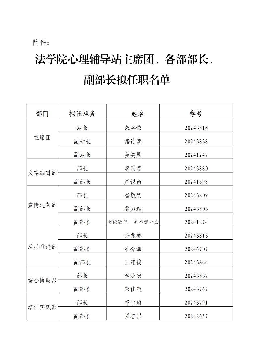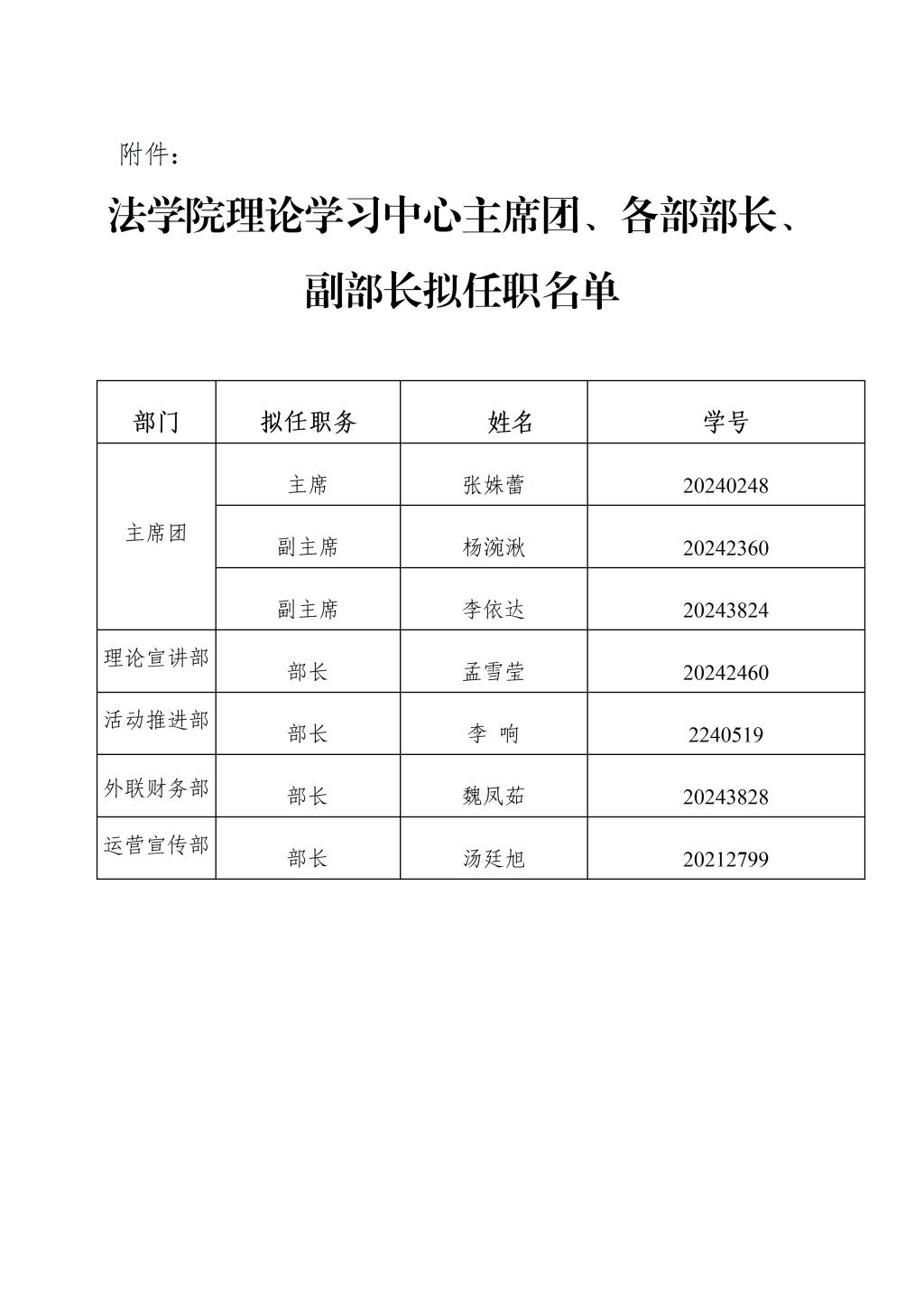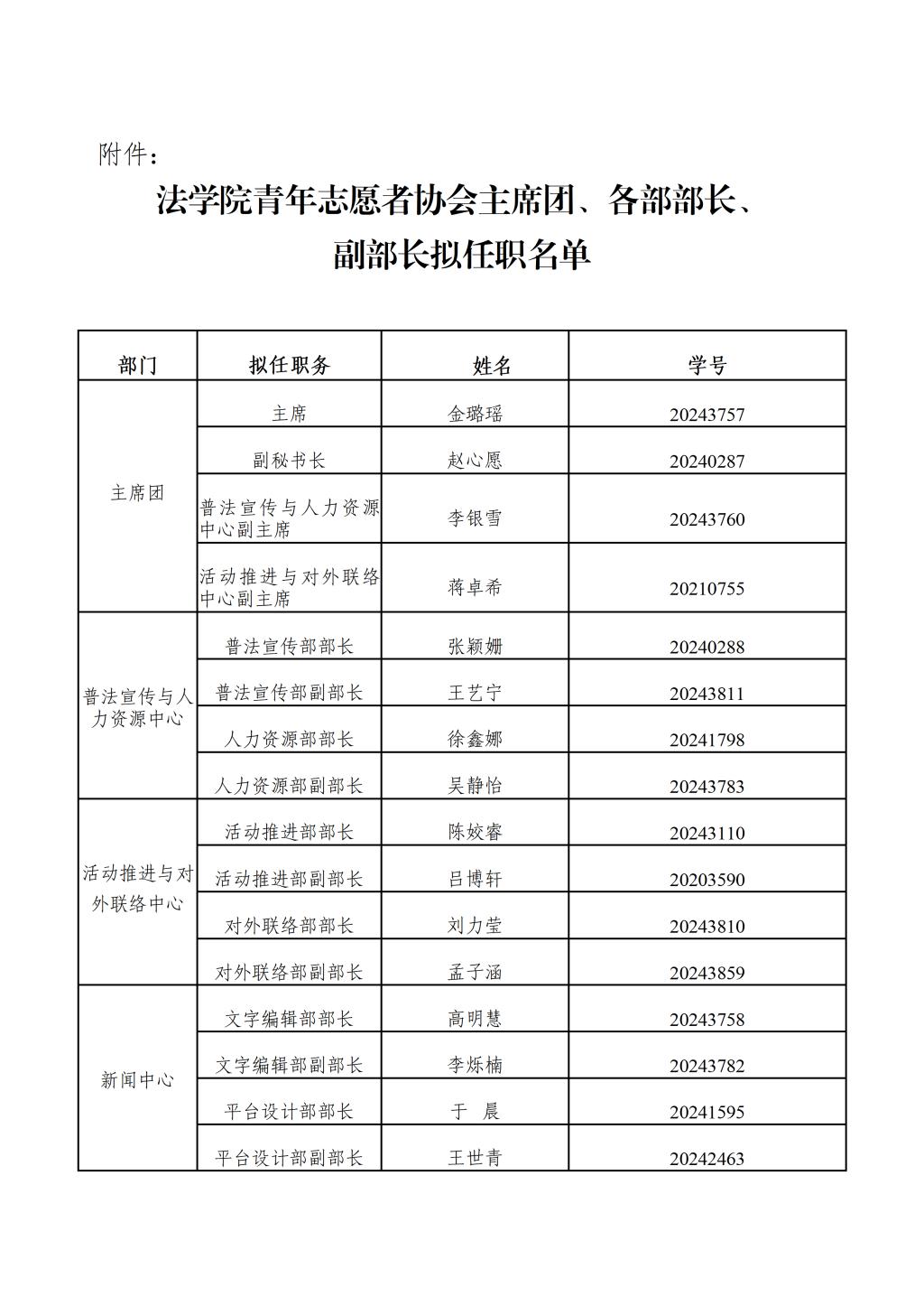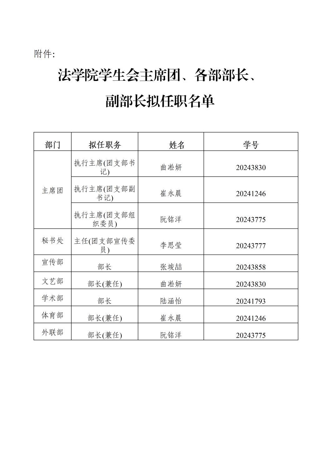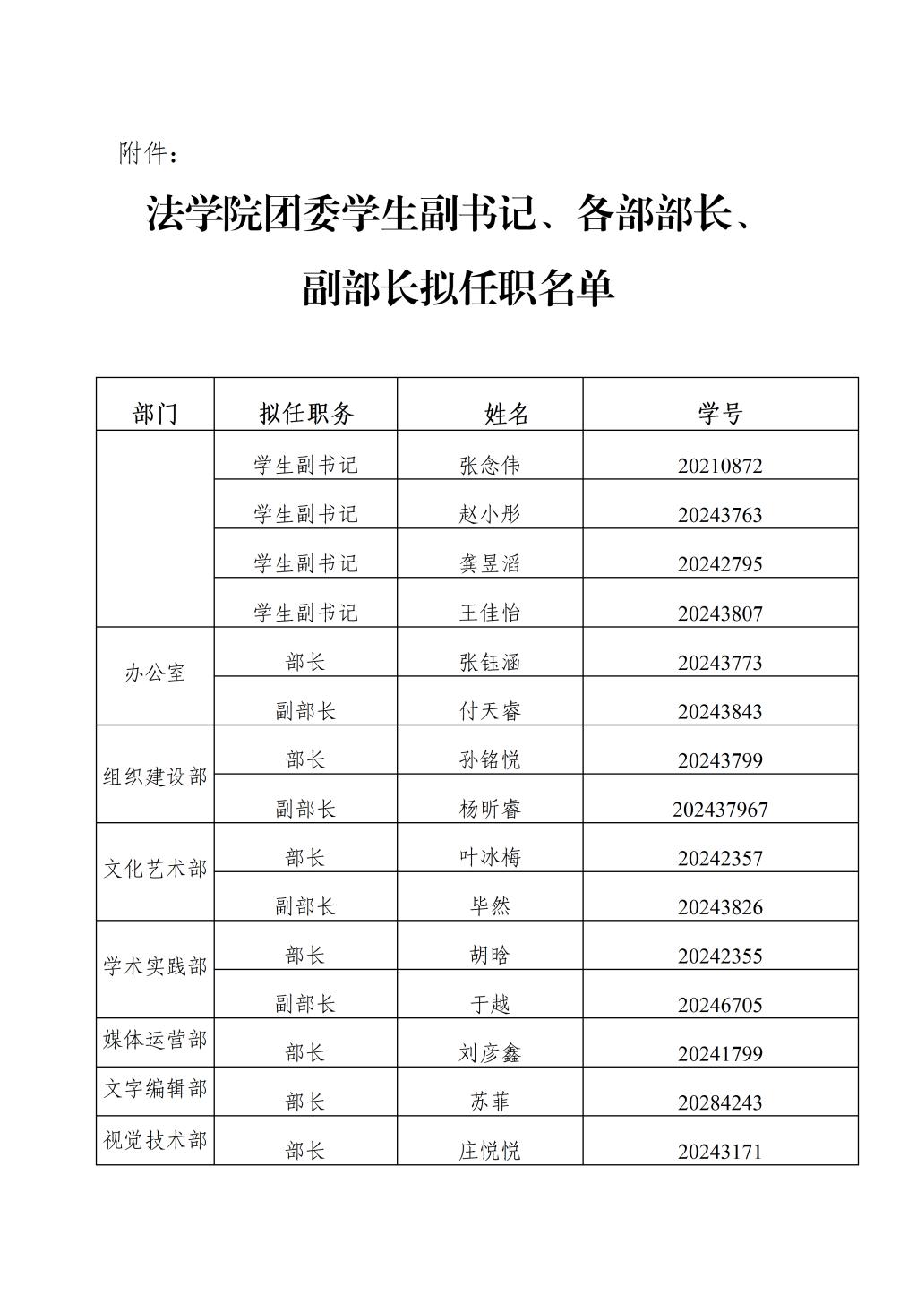 各学生组织换届任职名单