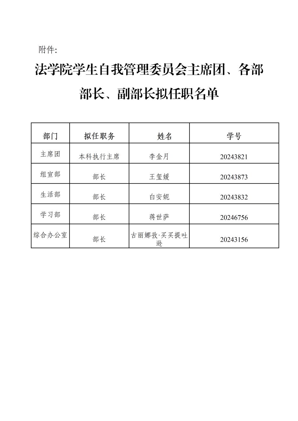 新一届学生组织拟任干部名单予以公示。