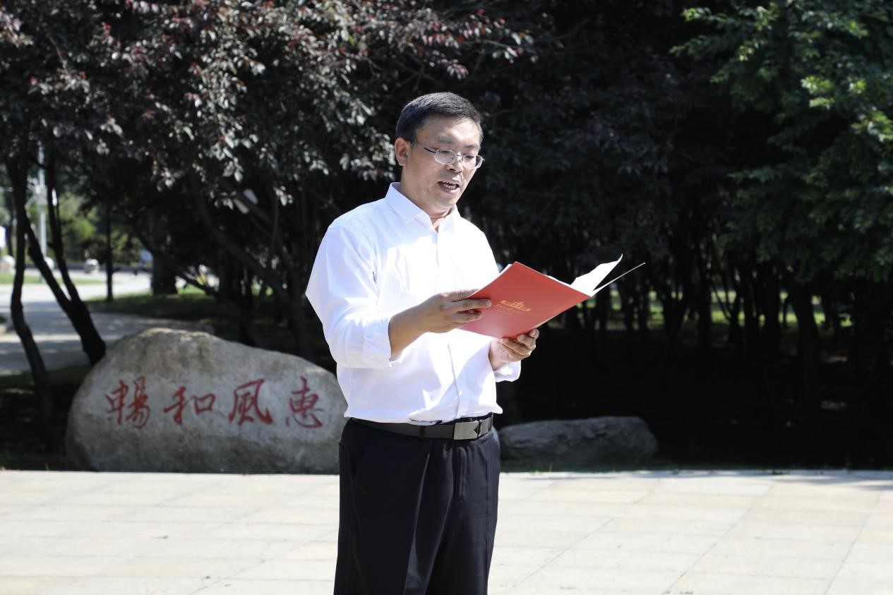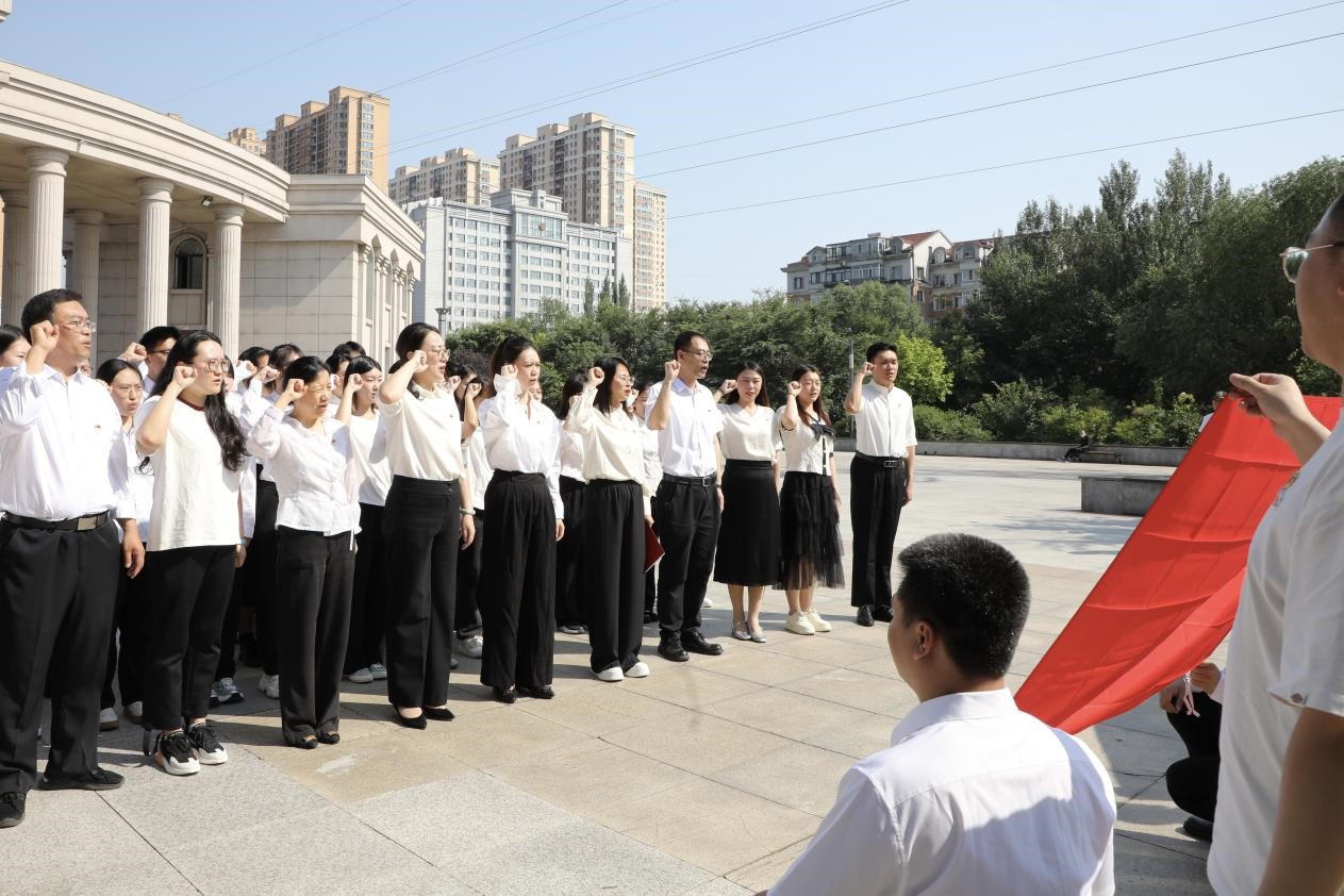 党委书记孙世萍带领师生党员面对鲜红的党旗,举起右手庄严宣誓,在一句句铿锵有力的誓词中,全体党员满怀激情,表达着对党的忠诚和听党话、跟党走的决心,进一步端正了新党员的入党动机,再次点燃了老党员们坚定理想信念、践行使命初心的激情。