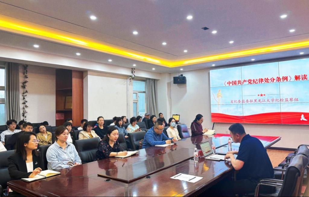 于6月5日下午在汇文楼会议室召开党纪学习教育宣讲会,特邀省纪委监委驻黑龙江大学纪检监察组副组长刘宝就《〈中国共产党纪律处分条例〉解读》进行宣讲,炸金花下载