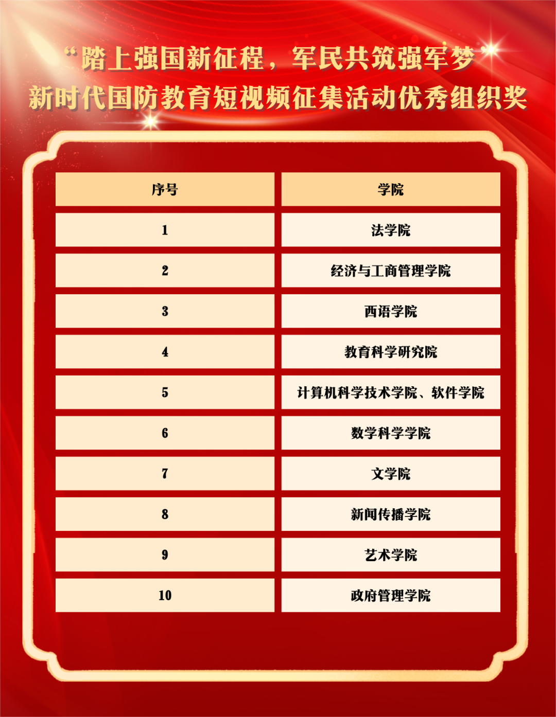 获评“优秀组织奖”。详情如下: