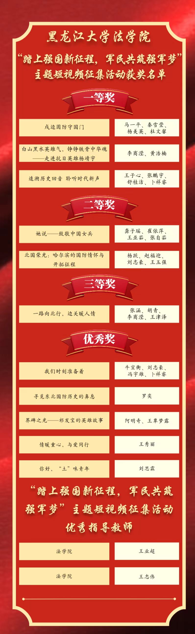 结合工作实际,积极组织、广泛动员,各年级辅导员从内容选材、形式设计、作品主旨等方面给予精心指导,共计推荐11支队伍参赛,累计3支队伍荣获一等奖,2支队伍荣获二等奖,1支队伍荣获三等奖,5支队伍荣获优秀奖,王业超、王志伟获评“优秀指导教师”,炸金花下载