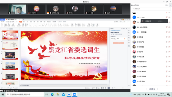 李嘉昊结合自身经历,对黑龙江省委选调生报考及相关情况进行介绍。首先,李嘉昊学长分享了自己的大学感悟。分别从学习方面、学生工作方面、恋爱方面细心认真地为学生们讲述,带给学生提供启示和思考。其次,李嘉昊介绍了什么是省委选调生。分别从选调生这项政策、考试方面、选调生一般负责的工作和乡镇政府的办公环境进行了讲述。让学生们对于选调生这项工作有了一个更加清晰的认识和了解。最后,李嘉昊鼓励学生们努力学习,不负韶华。