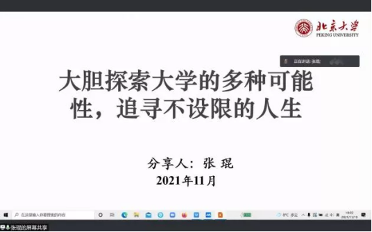 第四部分:在北大再次探寻可能性。张琨以北大教学网疫情期间新型教学方式更改为借鉴,表明网上授课直播回放对于每一名学生课后复习的重要性,指出新型教学方式对于大学生的推进作用;同时张琨介绍了北大图书馆设计的独特性,在学习之余寻求自身个性发展。