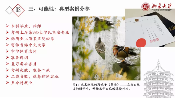 讲座中,张琨主要围绕五个部分展开讲述。第一部分:多维度,冲破事业局限。张琨学长以北大不同角度的博雅塔为引进,指出大学生追寻不设限的人生,前提是对这个世界充满普遍的好奇,在大学生中,要以多维度的方式对待、看待大学生活,要保持一颗好奇心,探寻适合自己的道路。
