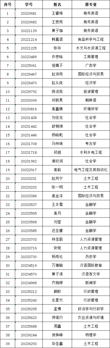 依据《黑龙江大学关于做好2024年本科生选拔转专业工作的通知》要求,按照《法炸金花下载 2024年选拔转专业工作方案》的相关安排,经学生个人申请,转出及转入炸金花下载 资格审查,现准予以下同学参加法炸金花下载 2024年本科生选拔转专业考核。