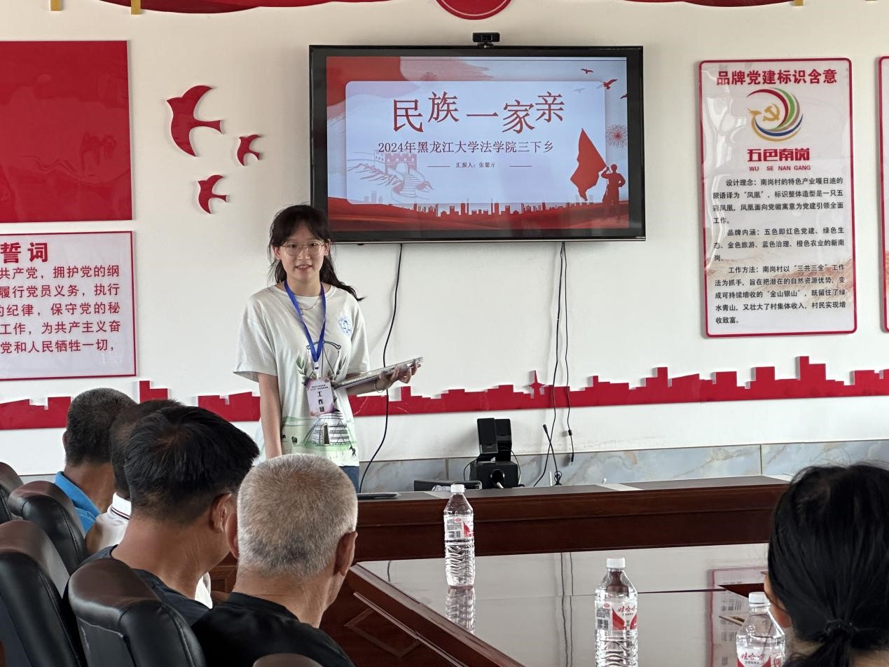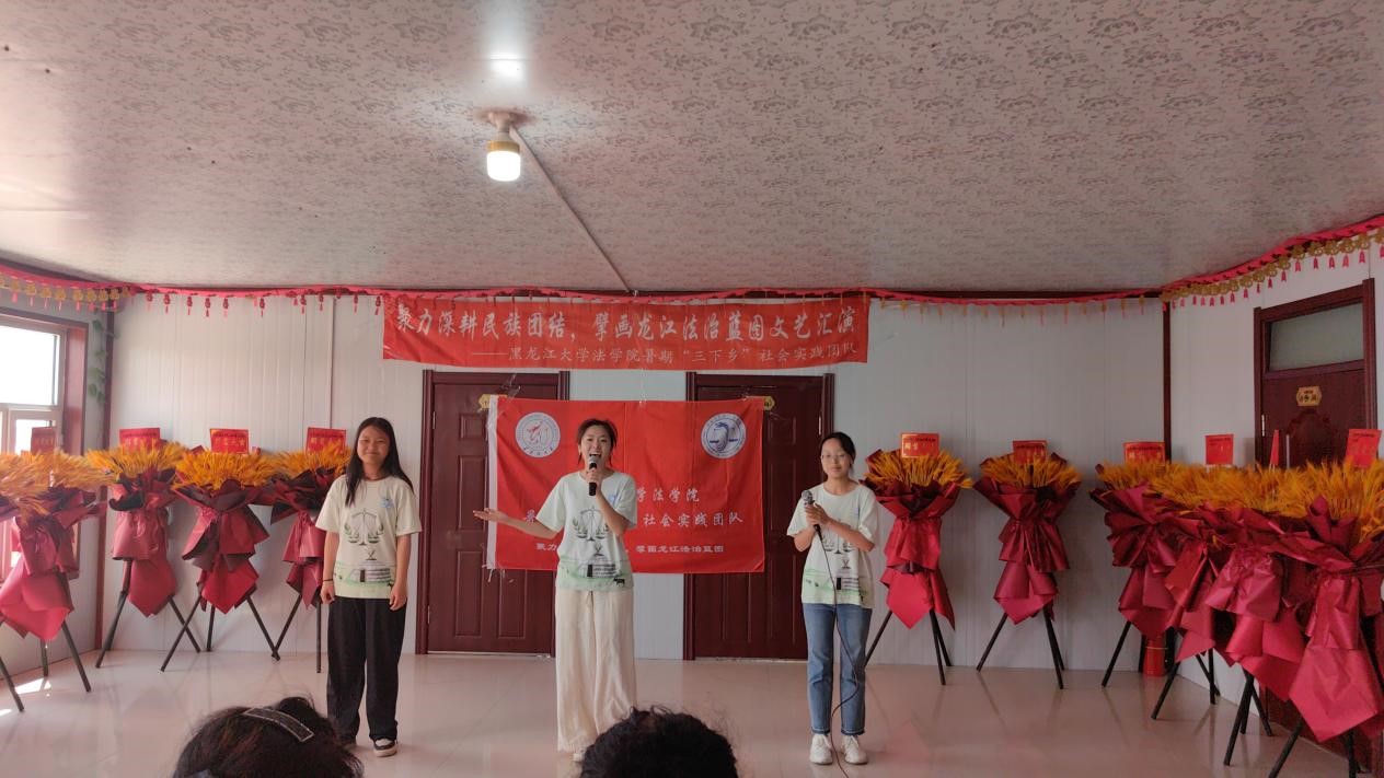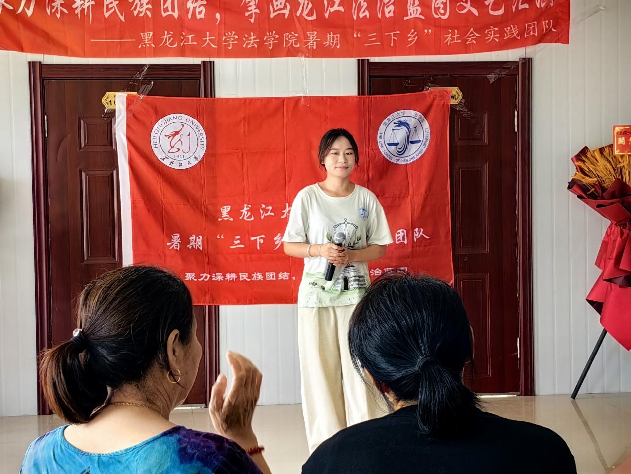 本次“三下乡”活动以“聚力深耕民族团结,擘画龙江法治蓝图”为主题,围绕促进民族团结,理论普及宣讲,法律咨询服务,乡村参观调研,惠民文艺汇演等五方面开展社会实践。聚焦“民族团结+志愿普法”新路径,从服务各族群众为切入点,组建了由专业教师指导、以学生为主体的共计26人的实践团队,走进杜尔伯特蒙古族自治县南岗村、胡吉吐莫镇、南城社区、寿山风情园普及民族法治知识,讲好民族团结进步故事。