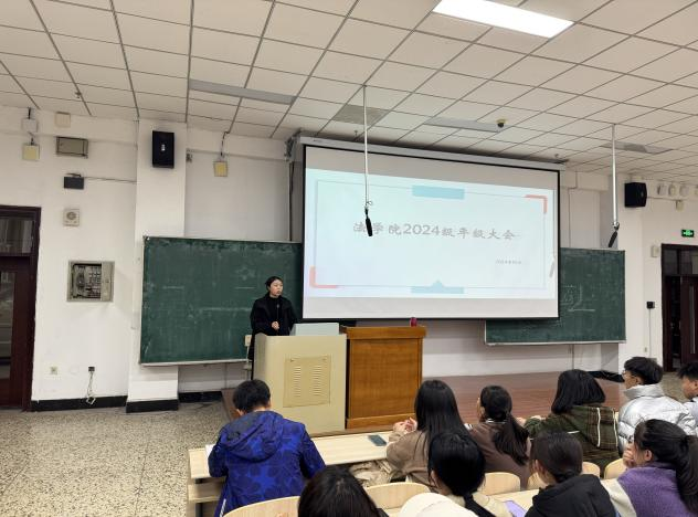年级大会上,24级辅导员张婧带领全体新生对《黑龙江大学学生管理规定》中的重要条款与事项进行学习,详细说明了学生的权利与义务、学分构成体系、学籍管理、学生奖励与处分条例等内容,帮助同学们对学习与生活规划得更加清晰。随后,张老师又在纪律处分与学风建设等方面进行了逐项解读,要求同学们严格遵守各项规章制度,并对同学们关心的综合素质评价问题进行解答,鼓励学生在各个领域积极进取,有针对性地提升自己的综合素质,为未来的发展奠定坚实基础。