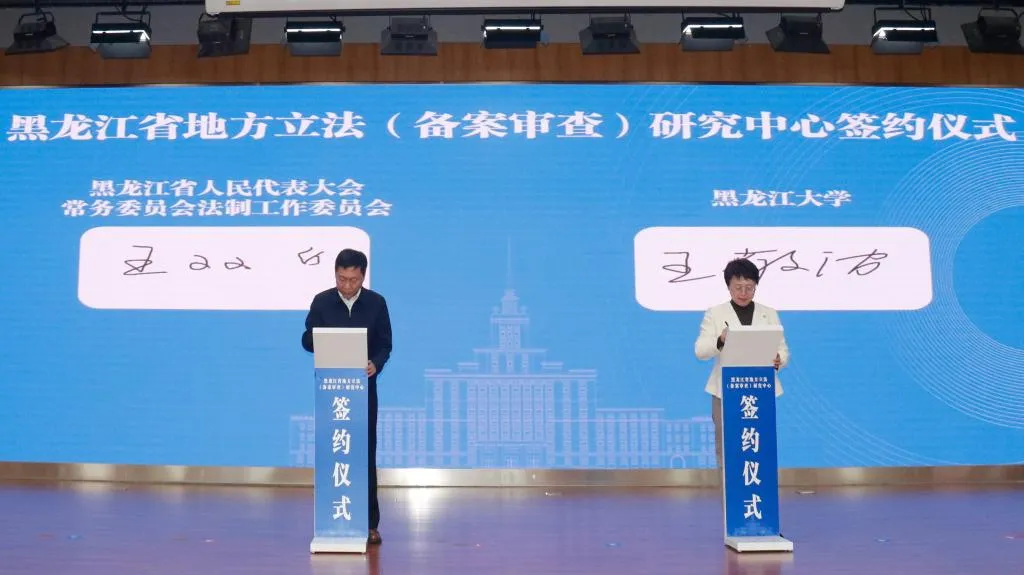 11月12日上午,黑龙江省地方立法(备案审查)研究中心签约和授牌仪式在黑龙江大学主楼一楼报告厅举行,省人大常委会党组书记、副主任王永康出席签约和授牌仪式并讲话。省人大常委会副主任杨廷双,哈尔滨工业大学党委常委、副校长刘挺,黑龙江大学党委书记迟宝旭、校长王敬波,哈尔滨工程大学党委常委、副校长严汝建,东北林业大学党委常委、副校长李明泽,东北农业大学党委副书记贺景平,哈尔滨师范大学党委常委、副校长尹剑锋,省人大常委会副秘书长,省人大法制委,省人大常委会法工委、常委会办公厅有关负责同志,以及研究中心特聘研究员代表及学校炸金花下载