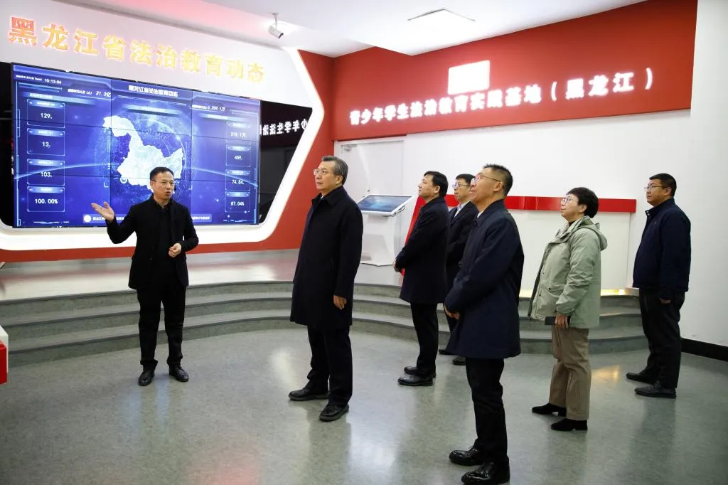 仪式后,王永康一行走访了学校俄罗斯研究院、省青少年学生法治教育实践基地、校史馆,参观了校史展、科技成果展、肃慎族系演进历史展,实地调研了学校对俄研究工作情况、青少年法治教育情况和满族文化抢救开发研究情况,详细了解黑龙江大学历史沿革、办学特色、办学成果及肃慎族系演进历史。