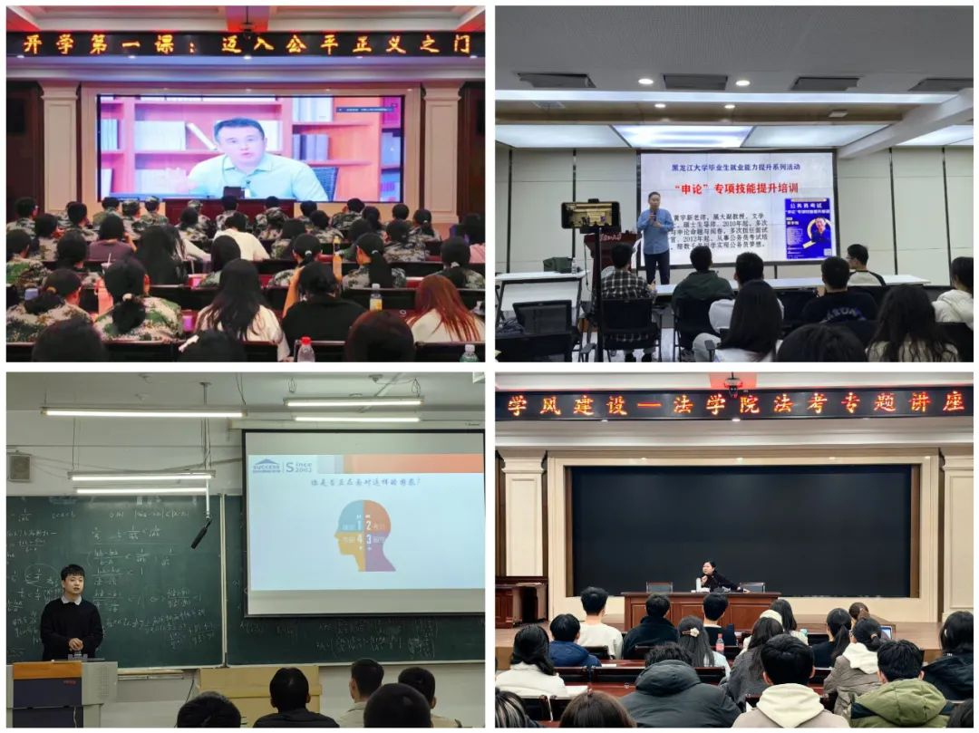 为拓宽学生的视野,全面提高综合素质,大一新生积极参与形式多样、内容丰富的讲座和实践活动。通过参与“开学第一课”系列讲座“迈入公平正义之门”,引领大一新生明确法学专业“三块五面”特色学习方法,树立“以至公无私之心,行正大光明之事”的人生座右铭;同时,大一新生参与公务员考试、研究生入学考试、法律职业资格考试等学风建设专题讲座培训,助力提前规划学习目标,明确未来发展方向,共同营造积极向上的学习氛围。