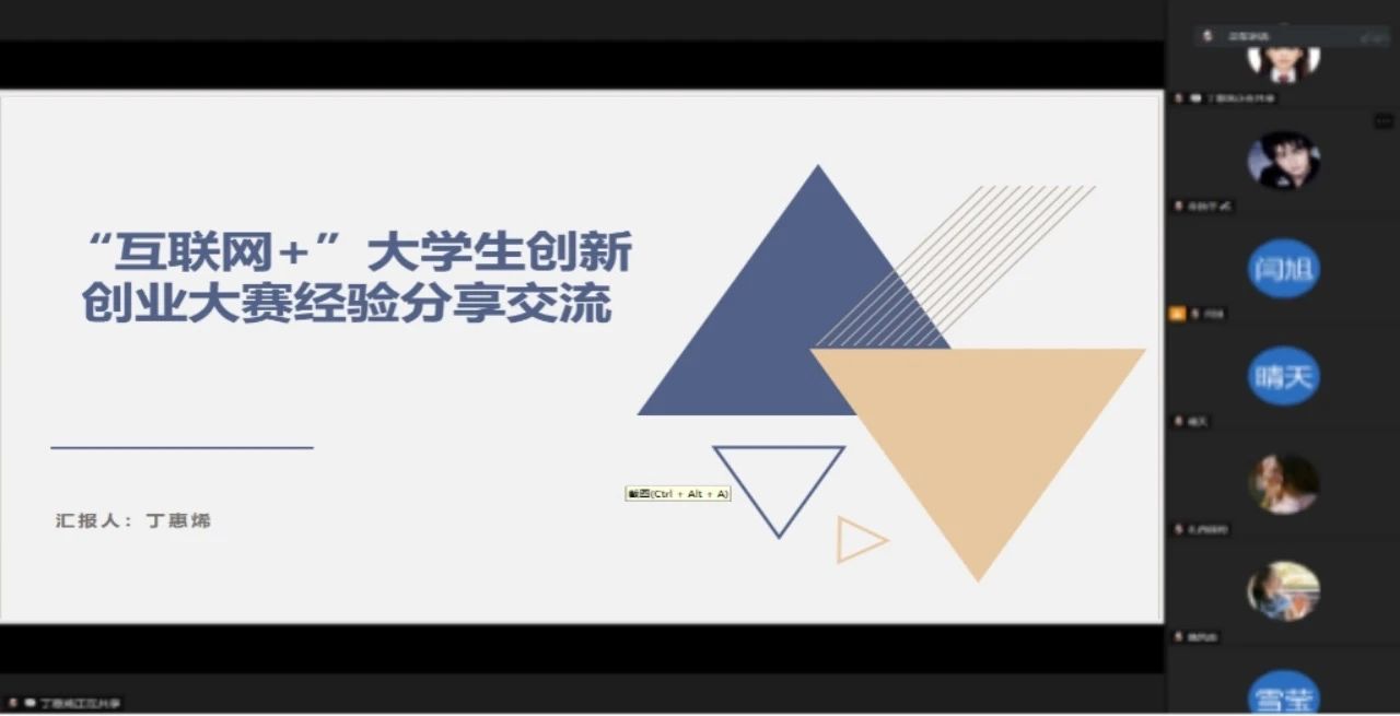 开展“互联网+”大学生创新创业大赛经验分享交流,主讲人为“互联网+”创新创业大赛全国银奖获得者、国家奖学金获得者、黑龙江省优秀毕业生、校优秀青年志愿者、2021级本科生丁惠烯。