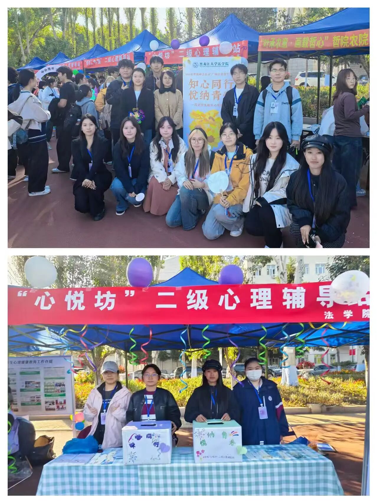 “心悦坊”二级心理辅导站的同学不仅为参与者成功普及了精神卫生知识,更巧妙地展示了法律与每个人身心健康福祉的密切联系,为校园注入了一股独特的“法治暖流”。
