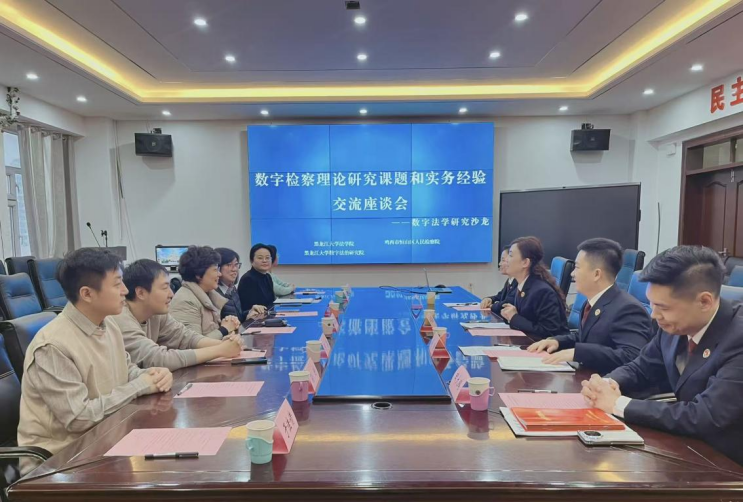 签约仪式后,双方围绕数字检察理论研究课题和实务经验展开了座谈交流,恒山区检察院检察长沙丽晶、常务副检察长吴涛、副检察长杜丽丽、政治部主任田大鹏分别介绍了数字检察课题研究的进展情况、数字检察监督面临的难题、数字检察的实践成果以及数字检察复合型人才队伍建设的现实需求。