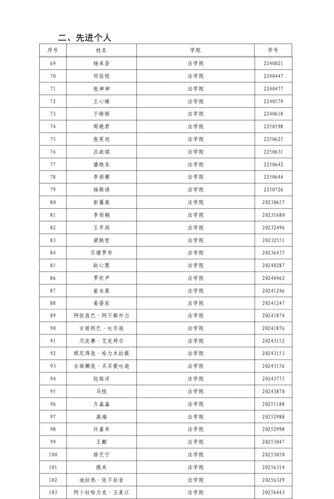 杨采荟、祁佳悦、张坤坤、王心晴、于娇娇、周艳君、张笑迎、吕政琪、潘晓东、李雨樨、杨斯琪、彭翼展、李雨桐、王芊润、梁轶哲、旦增罗布、赵心愿、罗丝尹、崔永晨、姜姿辰、阿依孜巴·阿不都外力、古丽则巴·吐尔逊、乃皮赛·艾克拜尔、胡尼得孜·哈力木拉提、古丽娜孜·买买提吐逊、阮铭洋、马悦、方森森、高端、许嘉禾、王麒、徐艺宁、德央、迪拉热·依不拉音、阿卜杜哈力克·玉麦江共35名同学表现突出,荣获“黑龙江大学2026年寒假社会实践活动先进个人”荣誉称号。